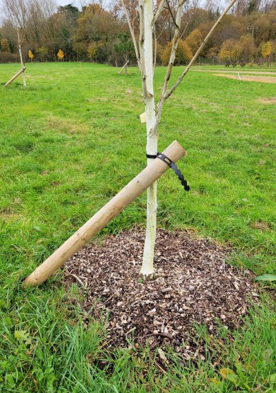 wind. The fixing should be monitored as the tree establishes to ensure that it remains secure but never too tight.