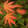 The leaves are deeply divided (but not as a dissectum), opening bright bronze-red. Summer colour is olive green, flushed with purple (dependant on light levels) but the scarlet autumn colour (photo left) is some of the best. It forms a wide spreading shrub with arching branches; to 2-3m high and often wider. See it in our Maple Glade. |