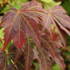 ACER palmatum 'Dônzuru bo' Essentially purple, though spring colour can briefly be a bright bronze-green. The purple red of summer turns bright red in autumn. The leaves are an attractive shape, with the lobes being divided almost to the base. |