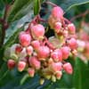 'Marina' This evergreen is a handsome hybrid with larger leaves than the more familiar A. unedo. In fact, it is bigger in every way. It seems to be quite happy on limey soil (not extreme though) and the extra vigour gives it a little more resilience to adverse conditions, retaining the lovely peeling bark. If you have dreamt about growing A. menziesii but had neither the soil or the climate, then this could be the plant for you! |