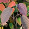 'Red Eye' This species is robust in constitution, though usually remaining smaller in size. It has distinctively rounded, almost heart shaped leaves. The racemes of yellow flowers are equally memorable with prominent red stamens. Good autumn colour. |