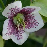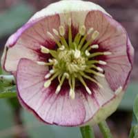 HELLEBORUS x hybridus Bicolour Wonderful flowers, having a creamy background with a pinky purple basal blotch which shades up through the veins to encircle the petals. |