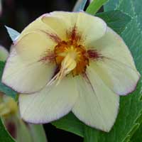 HELLEBORUS x ericsmithii (H. niger x H. sternii) This hardy hybrid is extremely beautiful with its evergreen, glaucous foliage that is occasionally marbled. The large flowers are held in clusters, opening ivory-white flushed pinkish bronze which deepens with age. Best in a sunny, well drained position. |