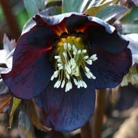 HELLEBORUS x hybridus Maroon A superb form with deep purple velvet like flowers with conspicuous yellow stamens. |