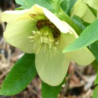 HELLEBORUS x hybridus Cream Cream flowers, some with the purple markings at the throat of the guttatus subspecies. |