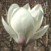 MAGNOLIA 'Manchu Fan' (M. x soulangeana 'Lennei Alba' x M. veitchii) This recent introduction produces medium sized white goblets with purplish staining at the base. Flowers are freely produced on this strong upright hybrid to 5m.Due to slightly more compact nature of both plant as a whole and it's flowers; this is the Magnolia I would suggest for a more windy site. |