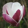 Lucky' A Chinese hybrid, correctly called M. 'Hong Yun'. This is a M. soulangeana type, with predominantly white flowers attractively striped with reddish pink up the outside of each petal. Interestingly, it often produces a second light flush of flowers in late summer. |