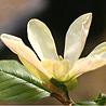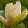 MAGNOLIA 'Tranquility' A hybrid of unknown parentage from M. acuminata, the broad petalled, pale golden flowers are delicately blushed with rose at the base and flatten as they open, to approximately 20cm wide. The foliage is wavy and cupped upward whilst the growth habit is rounded. Expect 5-6m. |