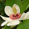 MAGNOLIA x wieseneri (syn. M. x watsonii) (M. hypoleuca x M. sieboldii) Perhaps the most strongly scented of all Magnolias. It becomes a small tree, the upward facing flowers open in June-July. Rounded white buds open to creamy white flowers with prominent rosy crimson stamens. |