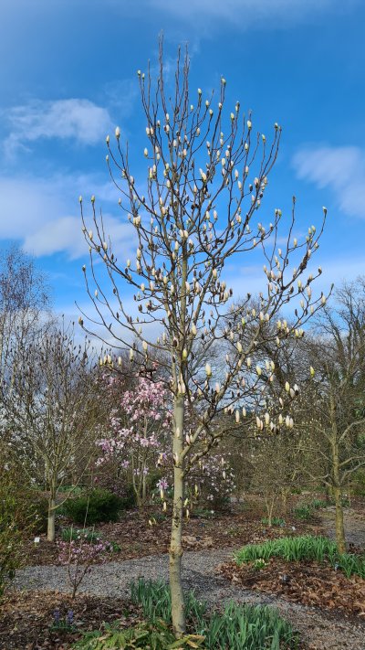 Now it's the turn of the Magnolia pages to be attended to. Given that we have some 360 different magnolias in the collection, this was inevitably going to be a much greater task. It's also a busy time of year on the nursery, and with increasing daylight length, I have fewer hours of darkness to spend on it! So, yes, it's taking a while. As a result, I have uploaded it "so-far" rather than waiting until it's completely finished. I have completely altered the structure of the Magnolia pages, dividing the entries across 4 pages initially. These are listed alphabetically by cultivar, regardless of whether or not they are attributed to a species (ie some cultivars are selections from a known species, whilst others are hybrids). I've also adjusted the Magnolia index page, so if you are interested in a particular species, it is possible to see a list of all the cultivars of that species that we grow. In time I will add pages where it will be possible to see all the cultivars that we have in a given group together. So, all the summer flowering selections will be together, all the so called "star magnolias" (ie cultivars of M. stellata and M. kobus and their hybrids including the M. x loebneri group. I'll probably include the M. salicifolia selections and derivatives here as well). It might also be helpful to have a page dedicated to yellow flowering magnolias because they are less well known, as well as one for evergreens now that we have a few of these in the collection beyond the ubiquitous M. grandiflora. There is increasing interest in planting magnolias reprising the display characteristic of the aristocratic M. campbellii, and we have a fabulous array of cultivars in this category, and they definitely deserve a page of their own. Climate change seems to be making it possible to grow the direct selections of M. campbellii in a greater range of localities, whilst modern breeding programs are achieving the best of both worlds in terms of floral display coupled with a hardier and more robust tree. Indeed, to this end Torsten has been breeding magnolias for a number of years now, a process which takes many years to reach flowering, but we have begun selecting our own new cultivars too. These additional pages are largely for the future though, and may indeed need to wait until next winter. Of course a priority will be to add photos to the basic listing. Some of these are already included, but I will be adding to these periodically as photos can be taken. The problem at this time of year is that when the weather is suitable for taking photos, there are also a thousand and one other jobs needing doing! Our plans for the website in the future include the extension of each cultivar listing to include multiple photos, illustrating the different stages of development of the flower, but most importantly the overall shape of the tree. Of course it's nice to know what the flower will look like, but in many cases images can be found on the internet. It tends to much harder to find meaningful images of the overall tree. This ambition becomes possible by virtue of the planting that we have done, and continue to do here, such that we have our collection planted out across our 50 acres. This includes specimens in the gardens as well as the arboretum. Inevitably many of these are still young and will take time to reach a size where meaningful photos can be taken. Nevertheless it so important that all our photos are taken of our own trees, on site here in our exposed corner of Somerset; so the flowers are very much representative of what can be achieved in the UK. However, I would comment that it can be incredibly difficult to accurately reproduce the flower colour digitally. Different cameras, different monitors (even different times of day when the sun is from a different angle) can all make colours look slightly different. This seems most noticeable with the darker pinky reds and purples, where it is notoriously difficult to accurately reproduce the exact colour. It's also relevant to note that there can be subtle variation in flower colour from year to year, both as the plant matures and dependant on the weather. Indeed, there are a lot of very interesting hypotheses as to how temperature influences flower colour, explaining why the colours are particularly noticeably different on certain cultivars grown in New Zealand by comparison with Europe. 'Vulcan' is the classic example of this, but the effect of temperature on the flowers is evident at a much more subtle level on many cultivars even from year to year in this country. Certainly the flowers of many cultivars also get larger year on year as the plant establishes and matures. Whilst those are some of my plans for the website, of more immediate importance is our current stock situation. Given the huge collection that we have, we are never able to propagate all cultivars every year. I make no apology for repeating our mantra that we only ever sell plants that we have propagated and grown ourselves - we do not buy in. This is such an important principle, but it does mean that not all cultivars are available in all sizes every year. However, with some 360 cultivars in the collection, it is usually possible to recommend an alternative cultivar to achieve the desired effect. Indeed I am aware that the number of cultivars we list can be overwhelming, so it is often easiest for you to email me to describe the visual effect you want to achieve and I can recommend accordingly. Valuable criteria that you might want to achieve include things like flower colour; flower shape and size; tree shape, habit and vigour, as well as anything else that's important to you. It's also vital that I understand your budget, as without that, it's impossible for me to know where to start looking for you. As I've explained elsewhere on these pages (including in the About Us section at the top of this page), the majority of our plants will be supplied rootballed and wrapped from the o